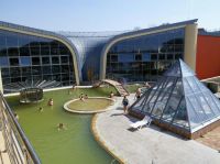 Vedle známého termálního koupaliště otevřeli v roce 2012 moderní wellness centrum Aquamarin. Má dvě části – Bazénový a Vitální svět. V rámci celodenního vstupného máte přístup do celého komplexu. Areál se rozproztírá na ploše 12 ha a k dispozici máte 10 bazénů. Samozřejmostí je také nabídka gastronomických služeb formou bufetů, restaurací, kaváren, cukráren.