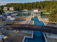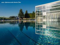 V areálu se nachází celkem devět bazénů, např. relexační bazény s vodními tryskami, plavecký bazén, sedací bazény, bazén s tobogánem, z toho jsou tři dětské. Teplota vody v bazénech se pohybuje od 26°C do 38°C. Kapacita areálu je 5000 osob. K dispozici je zde bufet a restaurace. Zdejší termální minerální voda vyvěrá z hloubky cca 2000 m a při vývěru má teplotu 65°C. Má blahodárné účinky na pohybové a nervové ústrojí, dýchací a kardiovaskulární systém.